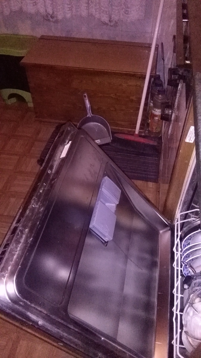 Fotografija prikazuje moja vsakdanja opravila. Ponavadi imam za delo pospraviti posodo in pometati, ki mi ni vedno najbolj všeč.