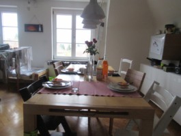 Tukaj sva [z mlajšim bratom] pripravila za zajtrk. Enkrat sva se sama zmislila, pa sva menu napisala kaj lahko naredimo, ampak sva par stvari gor napisala, ki jih sploh ne moreva naredit. Oči pa mami sta nama rekla, da hočeta jajca, midva sva pa spekla palačinke. Toast, ali pa šmorn znava naredit. Doma po navadi jaz ali obesim perilo, ali pa dam prati, ali pa štunfe zložim. Kdaj pa kdaj iz pomivalnega stroja zložim. Oči pa tako, nama reče pomijta, ura je sedem! Nehajta gledat televizijo, zdaj je večerja! In po navadi enkrat, ko se zbudiš ponoči, pol najdeš očija, ko je čokolado, pa gleda TV. In reče, ja, sem samo zaspal na kavču medtem ko sem bral knjigo.