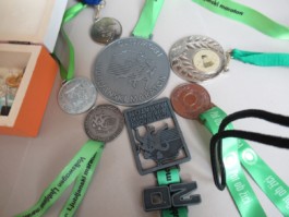 Ta srednja, ta velika medalja je moja, mi jo je dal dedi, dedi je tekel maraton. Te druge medalje so pa od mojega brata. Velik je maratonskih, pa kle je pot ob žici, pa badminton, pa smučanje. [To sliko sem izbral], ker so lepe medalje. Spominjajo me na to, da je moj dedi prijazen, ker mi je dal to medaljo. Če bi jo pa sam dobil, bi mi pa bila za spomin, da sem jo dobil.