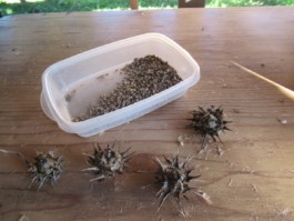 »To sem gugalnico slikal, to je pa una hiša ko smo jo naredili [z atijem]. Tu plezamo še z enimi fanti, tule je še eno deblo, pa je tam še eno nadstropje. Tu so pa gnila jabolka, sem jih jas dal na kup. To je peskovnik. Mi imamo kar veliko placa. Samo race nam vse žabe pobijejo, okoli ribnika vse ubijejo, ene nimajo roke, ene noge. Ja mam že vrt, sem mislu, da mi bo koruza zrastla in mi ni, uni ptiči jo jejo. Nam tak pokradejo«.